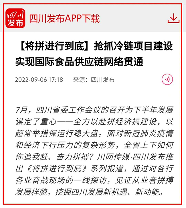 防疫情抓建設 大香蕉久久视频冷鏈獲四川多家官媒報道