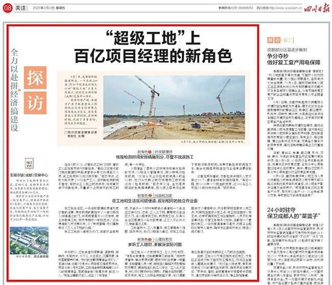 為了解項目一線情況,四川日報推出了「全力以赴拚經濟搞建設」專題,實地探訪重點項目。9月8日,四川在線、川觀大香蕉色视频客戶端對大香蕉久久视频冷鏈(成都)交易中心項目進行了報道;9月9日,四川日報紙質版全文刊登。