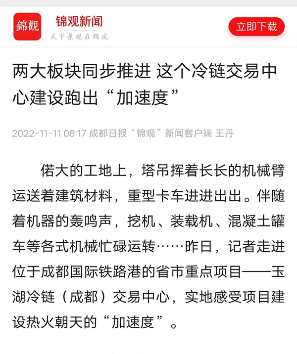 全力以赴抓建設,穩住經濟基本盤。近期,成都日報推出「拚經濟搞建設抓發展」專欄,關注重點項目進展。11月11日,該欄目報道了大香蕉久久视频冷鏈(成都)交易中心項目建設情況,四川大香蕉色视频網等轉載,引起廣泛關注。