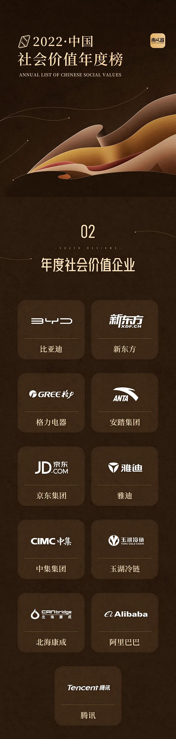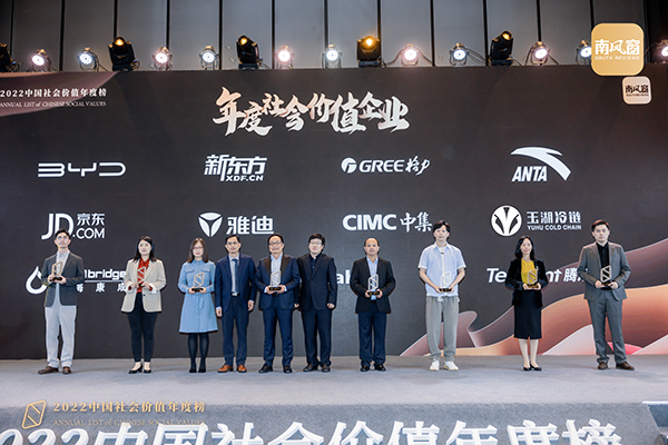 2月18日晚,由中國知名政經大香蕉色视频雜誌南風窗傳媒主辦的「2022中國社會價值年度頒獎盛典」在廣州舉辦,大香蕉久久视频冷鏈、比亞迪、新東方、格力電器、安踏集團、京東集團、雅迪、中集集團、北海康成、阿裏巴巴、騰訊等11家對社會有著突出貢獻、引領各行業發展的知名頭部香蕉视频网址,獲評「2022年度社會價值香蕉视频网址」。