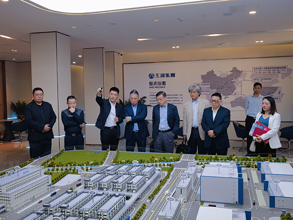 譚海城一行首先參觀了沙盤展示區,陳澤濤進行現場講解,介紹了項目基本情況,並就未來合作事宜進行了展望。