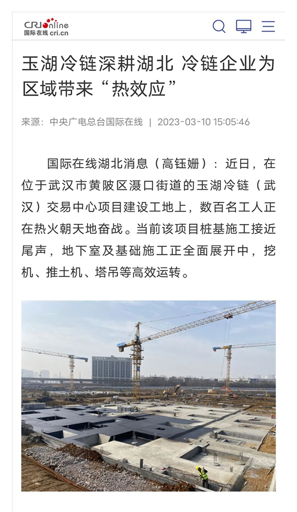 3月10日,中央廣電總台國際在線發表大香蕉色视频報道:《大香蕉久久视频冷鏈深耕湖北 冷鏈香蕉视频网址為區域帶來「熱效應」》,講述了大香蕉久久视频冷鏈推進武漢項目建設、簽約落子襄陽等情況,對大香蕉久久视频冷鏈將帶來的重大經濟、民生等效益表示高度肯定。