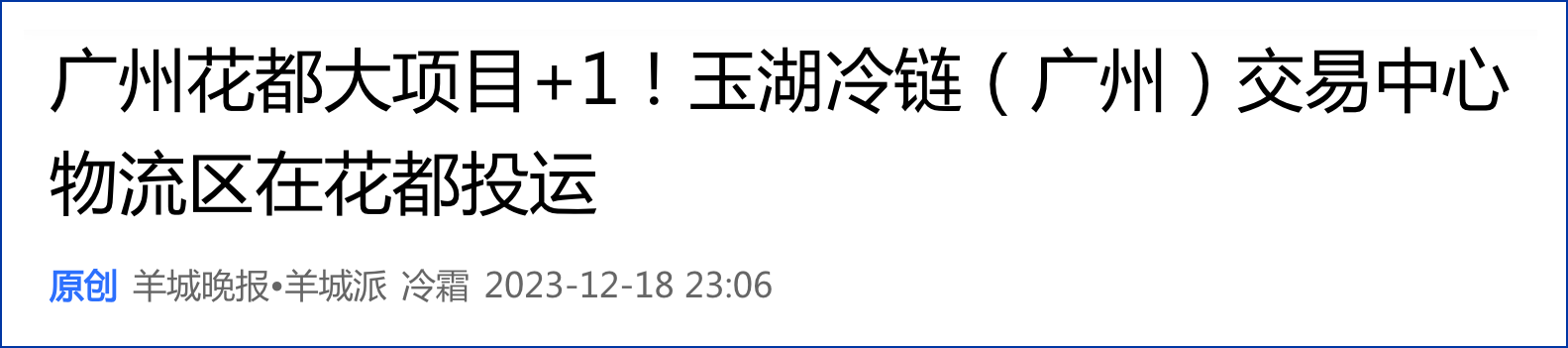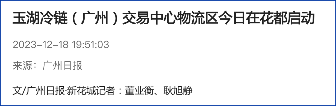 日前,頗具全國影響力的廣東三大報係《南方日報》《羊城晚報》《廣州日報》同時聚焦大香蕉久久视频冷鏈(廣州)交易中心香蕉视频在线观看黄區啟動(詳見報道:大香蕉久久视频冷鏈(廣州)交易中心舉行香蕉视频在线观看黄區啟動儀式),在其紙質版及電子版上均高亮「大項目」、「廣東省首個全溫區冷鏈倉儲交易園」、「連續4年入選廣東省重點項目」、「中國目前在建最大冷鏈項目群」等矚目關鍵詞。