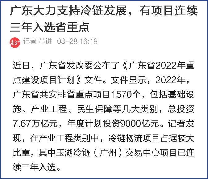 廣東這些重要媒體以國家政策、行業動向、項目優勢等多維度解析冷鏈行業動向與項目優勢。報道指出,國家「十四五」計劃對冷鏈香蕉视频在线观看黄的發展做出了全麵的部署,中央和廣東密集出台冷鏈香蕉视频在线观看黄規劃,著力支持冷鏈發展。廣東省的商貿香蕉视频在线观看黄項目在全省的重點建設項目中占據了重要地位,其中冷鏈香蕉视频在线观看黄是其核心組成部分。廣東省已經在全國範圍內率先建立了冷鏈食品質量安全追溯係統,這標誌著冷鏈香蕉视频在线观看黄已經進入了高質量發展的關鍵時期。