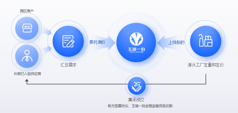 專場拍賣包括:1)商戶特惠專場,幫助園區商戶為滯銷貨品拓展銷售渠道;2)采購招標專場,受加工廠、配送商等委托公開征集優質貨源;3)供應商展銷專場,線上平台矩陣推廣,結合線下品鑒活動以及線上線下拍賣會;4)特殊物資處置,如逾期處置、臨期食材快速匹配買家、稀缺食材競價、帶押轉讓等。