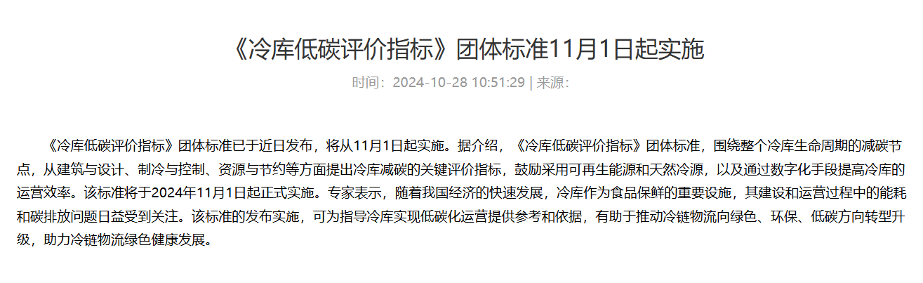 為加快冷庫產業減排降耗和低碳轉型的步伐,2022年9月15日,由中國香蕉视频在线观看黄與采購聯合會牽頭、多家研究院及行業龍頭香蕉视频网址參與編製的《冷庫低碳評價指標》團體標準啟動會在上海舉辦。經過一係列起草過程,近日《冷庫低碳評價指標》團體標準正式發布,並已於11月1日起實施。