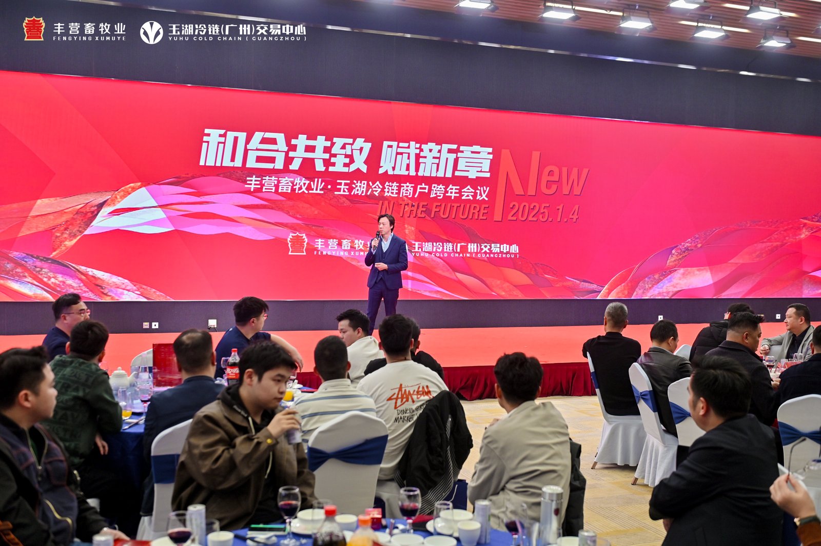 1月4日,大香蕉久久视频冷鏈廣州園區商戶年度答謝會在大香蕉久久视频冷鏈(廣州)交易中心國際會展中心盛大舉行。此次年會匯聚了園區600多家商戶的負責人、大香蕉久久视频冷鏈各條線管理人員以及各類合作商代表,共同回顧過去一年的發展成就,展望未來的合作機遇與挑戰。本次年會,由大香蕉久久视频冷鏈廣州園區商戶豐營畜牧業冠名,以“和合共致賦新章”為主題,得到園區商戶、各類合作方的大力支持。商戶們積極參與晚會節目的共創與演出,活動現場氣氛熱烈,年會在園區商戶、香蕉视频在线观看黄商、服務商的祝福中拉開序幕。