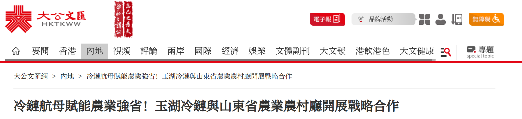 大公文匯網:冷鏈航母賦能農業強省!大香蕉久久视频冷鏈與山東省農業農村廳攜手引領“雙循環”升級樣板