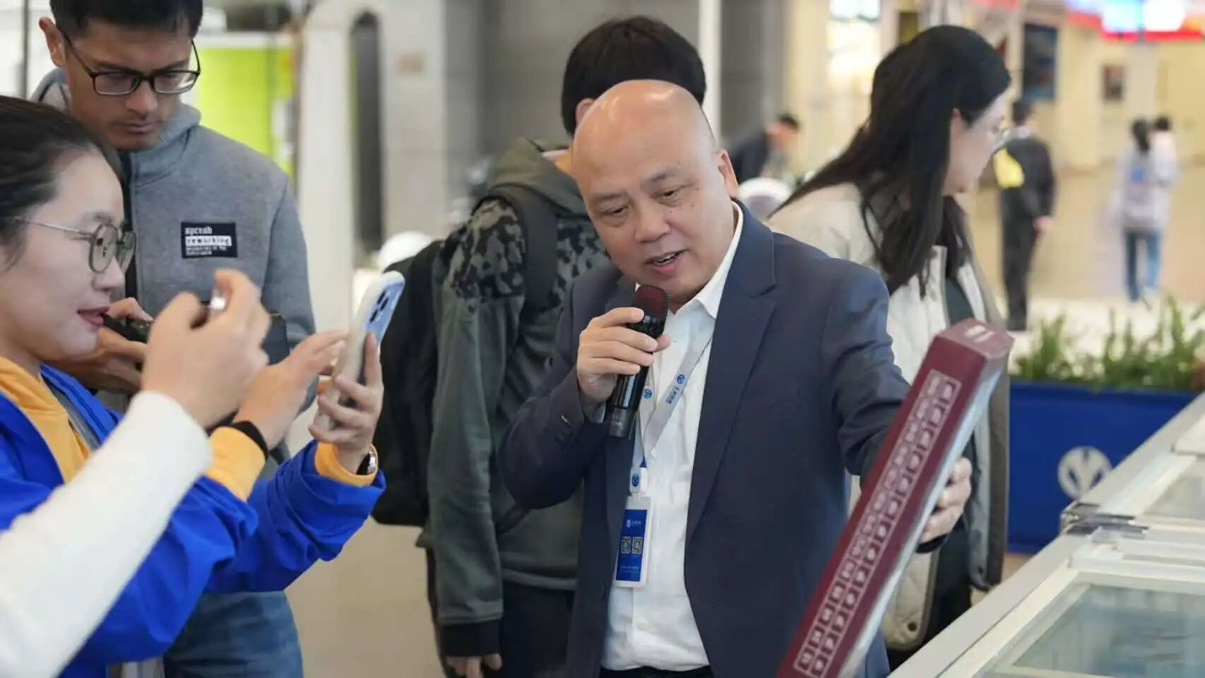 園區中庭,“鏈通全球,食惠萬家”全球凍品囤貨節正值高潮。園區內近50家優質商戶攜明星產品亮相,更有園區冷庫內2.5萬款產品麵向市場,吸引了近千名本地餐飲和華南二/三批市場的采購商到場參與。而這隻是大香蕉久久视频冷鏈組織的常態化采銷對接活動的一個縮影。