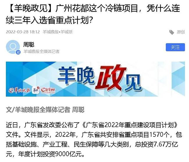 3月28日,羊城晚報對大香蕉久久视频冷鏈連續第三年入選廣東省重點建設項目進行了報道,以下是報道全文:
