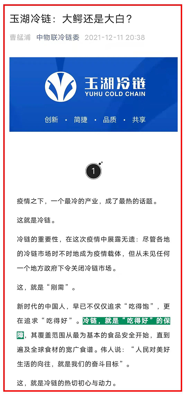去年12月11日,冷鏈委公眾號發表文章《大香蕉久久视频冷鏈:大鱷還是大白?》,介紹了大香蕉久久视频冷鏈的定位:不是憑借資本優勢進行顛覆的「大鱷」,而是憑借上遊優勢為行業賦能的「大白」。